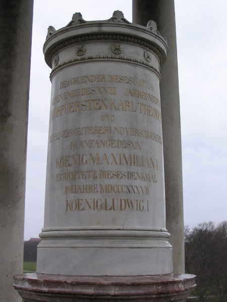 | Inside the Monopteros is this small column. It says something about King Maximillian I and King Ludwig I. |