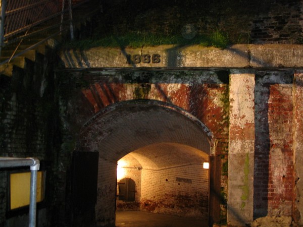 | Here is a tunnel circa 1886. A dark tunnel on a prison island at night can be kind of creepy. |