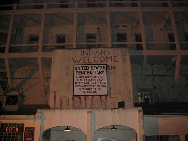 On the wall you can see writing from the seizure of the then unoccupied island by Indian activists from November 1969 to June 1971. In June 1970, several historic buildings were burned. The authorities said it was arson. The Indians claimed it was done by government saboteurs. It may have been accidental. Public sentiment turned against the Indians and the island was reclaimed by federal marshals after nineteen months of occupation. |
