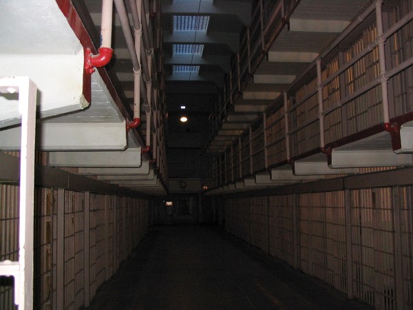 | Here's the view down the cell block. This was known as Broadway. At the end is Times Square. I guess because there is a clock down there. |