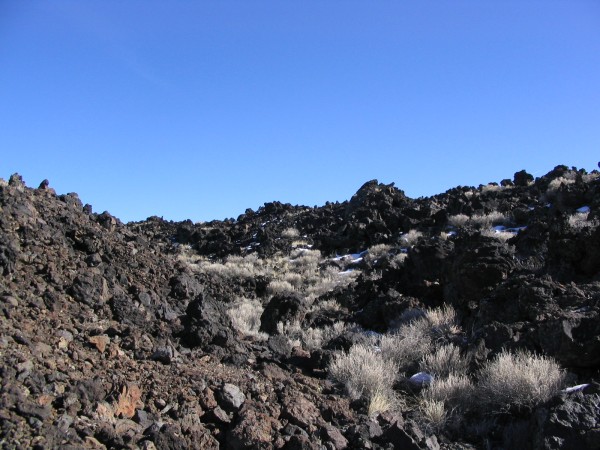 | Black Rock Lava Flow is in Nye County. It was formed by a quiet volcanic eruption. Rather than explode like volcanoes we are used to like Mount St. Helens and Mount Pinatubo, this one just kind of swelled and bubbled up. It began to flow to the west and as it cooled it formed these black volcanic rocks. |