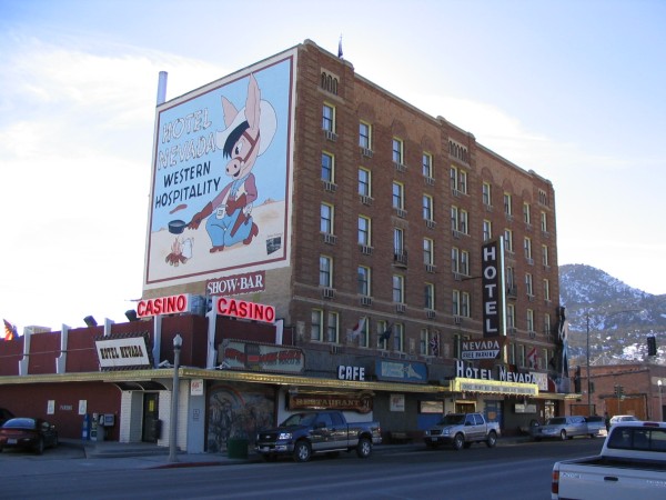 | Believe it or not, when the six-story Hotel Nevada opened in 1929, it was the tallest building in the state and its first fire-proof building. Rooms went for $1.50 and up. Prices aren't that expensive today. My room was 30-something dollars a night. |