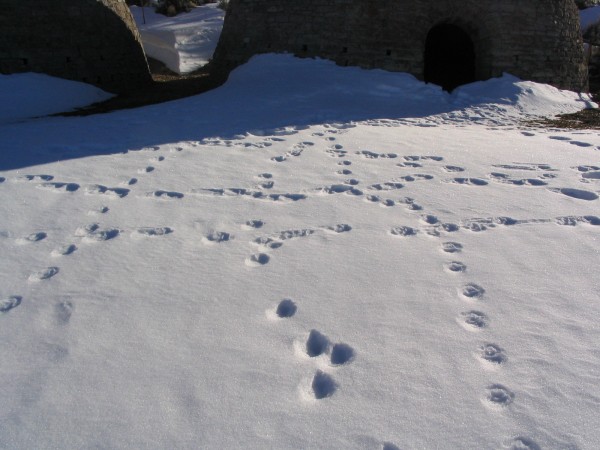 | The snow was quite deep here. I also noticed that there were some non-human tracks in the snow that looked like they could have been made by an animal that I didn't want to come across, so I didn't stick around. The road to the park was quite muddy in spots, but the 1/2 mile to this site was almost all mud. The drive to and back was quite a challenge. I was slipping and sliding going as fast as I could so that I wouldn't end up stuck in the mud without being able to get out. |