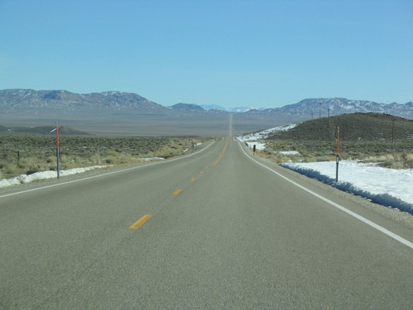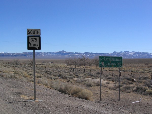 | State Rte. 375 runs between US Hwy. 6 at Warm Springs (a town on the map that doesn't even exist) and US Hwy. 93. It runs very close to the Air Force range and the famed Area 51. It has been dubbed Extraterrestrial Highway. |