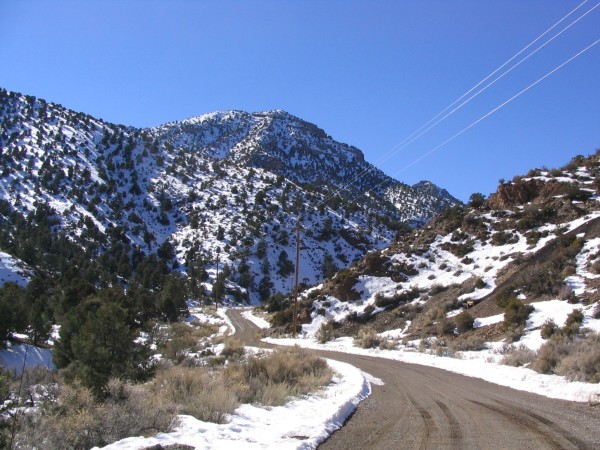 | There is more in Tybo than I got to see, but there was a house right there on the road and a car was in the drive. I didn't feel like getting shot at, so I just took these few photos and got the hell out of there. Even missing some of the old buildings, the canyon was quite beautiful with the snow. |
